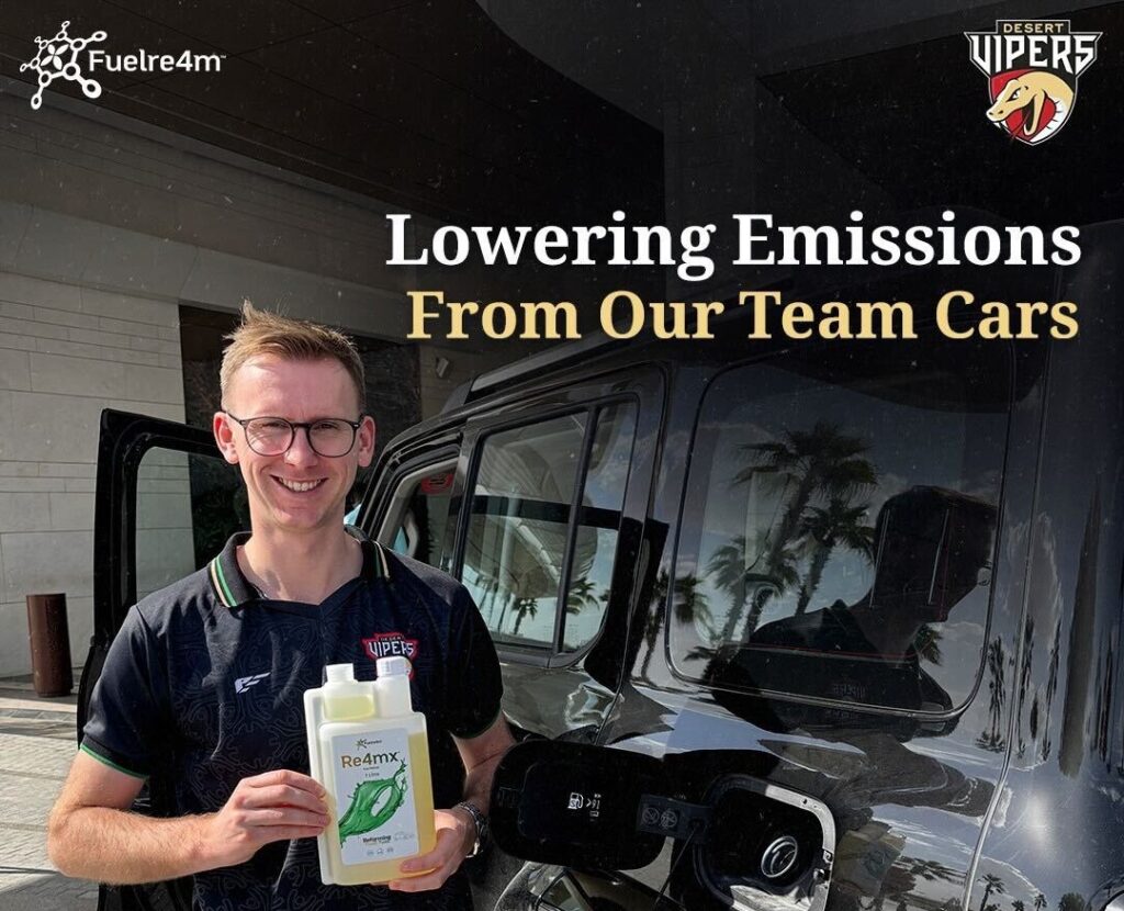 In order to address emissions associated with fuel consumption, we partnered with Fuelre4m in Season 4, who have a fuel reformer product – Re4mx – which helps fuel last longer, reducing consumption by approximately 15-20%, and, in turn, significantly lowering emissions. We worked with Fuelre4m across the season to use Re4mx in as many places as possible where Desert Vipers uses petrol and diesel, with the results shown below.